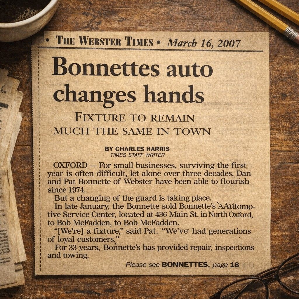 Dan Bonnette and his wife Pat opened up this shop in 1974 and ran it for 32 years. In 2007 ownership was transferred from their family to Ours. Bob McFadden Sr and his son Rob McFadden Jr purchased the shop and embraced the great people of Oxford, MA. Putting customer service above all else and earning the trust of our loyal customers. Today the shop is run by Rob and his wife Michelle. Upholding the 5 decade legacy with skilled technicians providing honest and thorough service, ensuring every vehicle leaves our shop in top condition.
